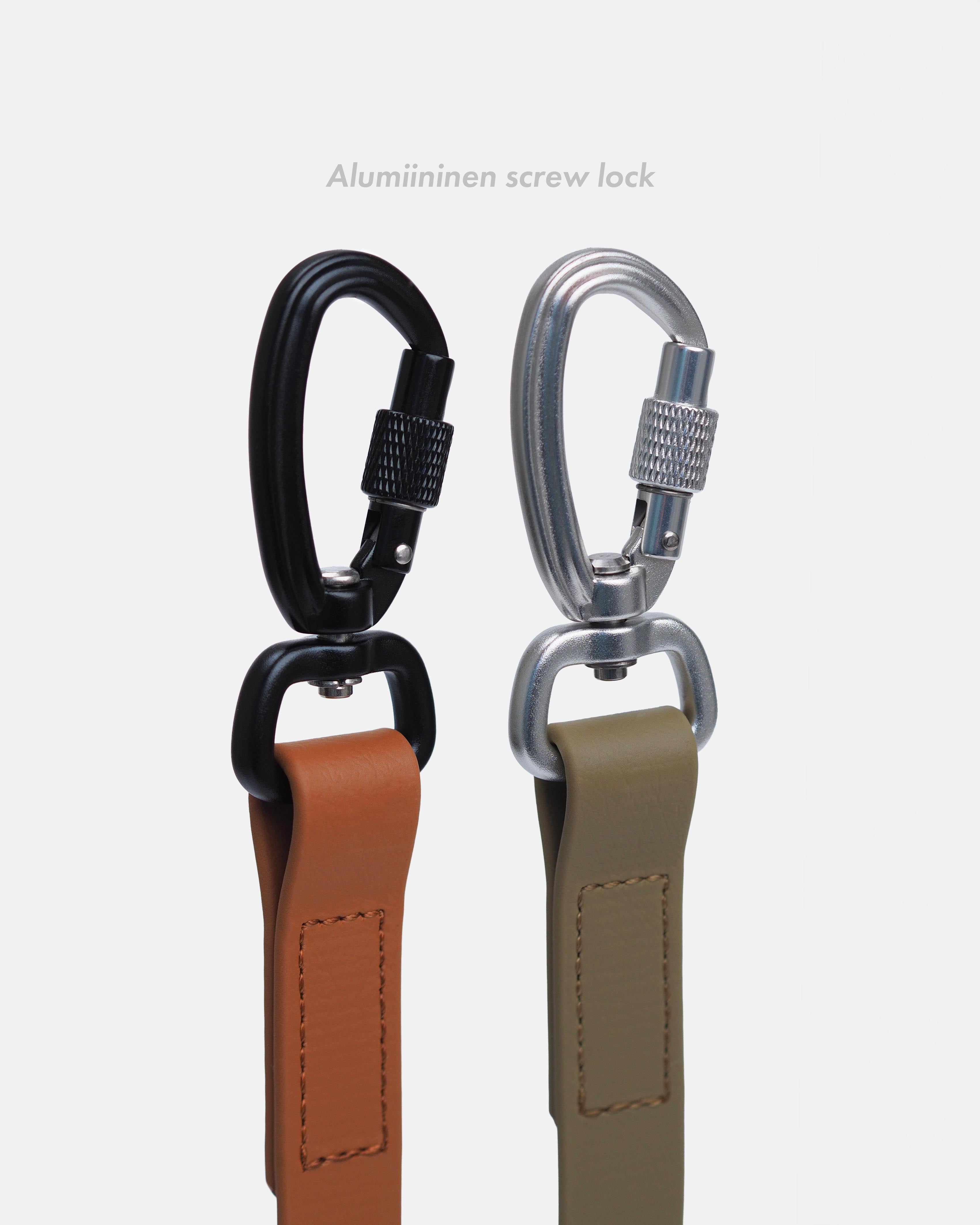 Onko sinulla kaksi koiraa, joita haluaisit ulkoiluttaa hand free-tyyliin ilman hihnojen sotkeentumista? Onnistuu! Adapteri mahdollistaa kahden hihnan kiinnittämisen ja helpottaa lenkkejä kahden koiran kanssa ilman hihnasotkuja. Valittavana on helposti ja nopeasti kytkettävä teräksinen karabiinihaka sekä kevyt, mutta todella kestävä alumiininen screw lock.